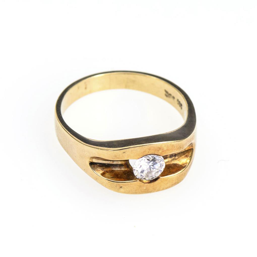 Yellow gold 585 stamped. Ring size 64. diamond 0.595 ct/white/PI. 9,3 g.