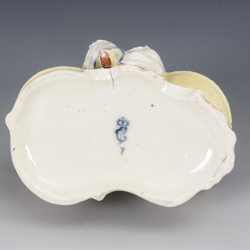 Polychrome painted, gold decorated. H 10,5 cm, L 11,5 cm.