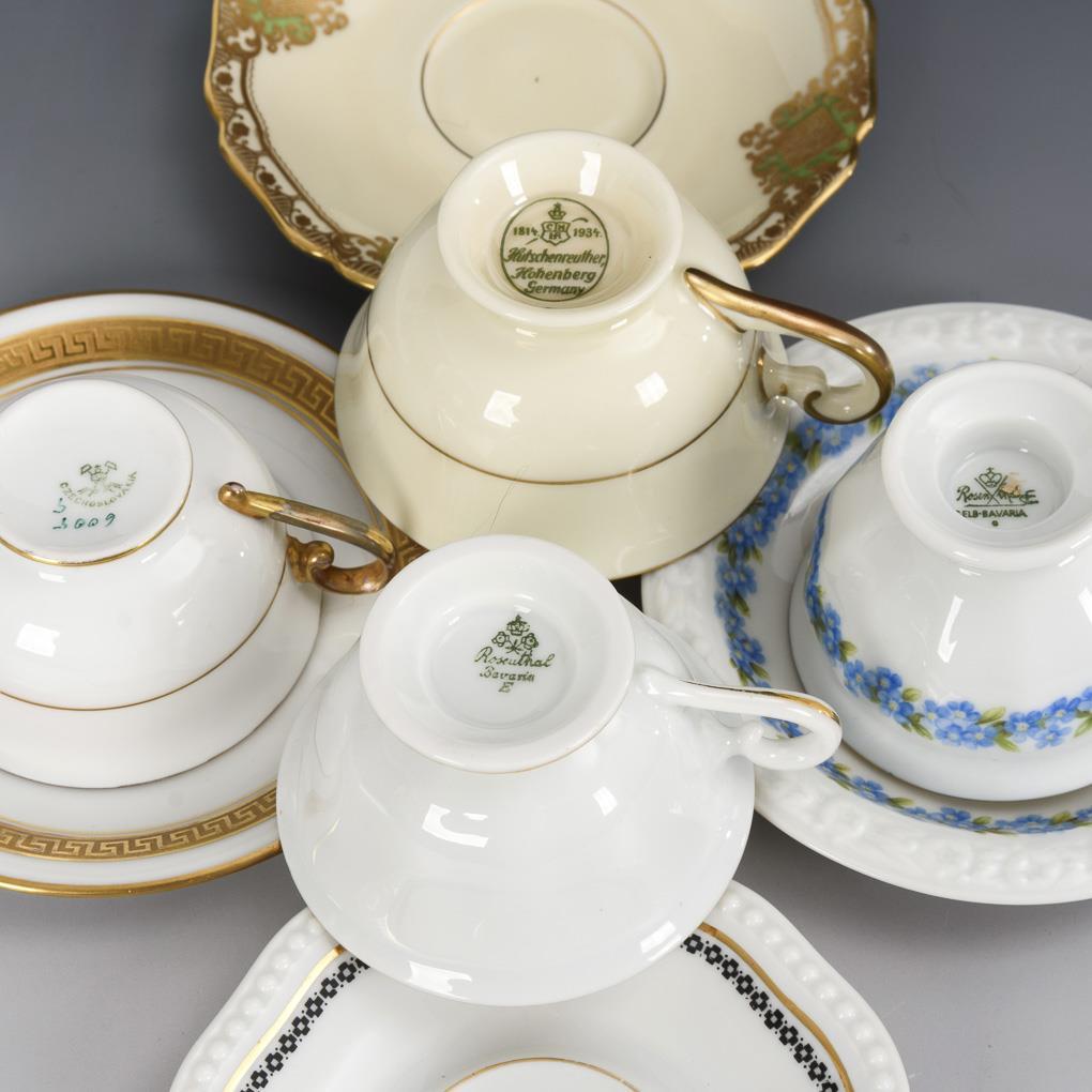 Colorful decor, gold staffage. H cups 4-4,5 cm, Ø saucers 10,5-11 cm.