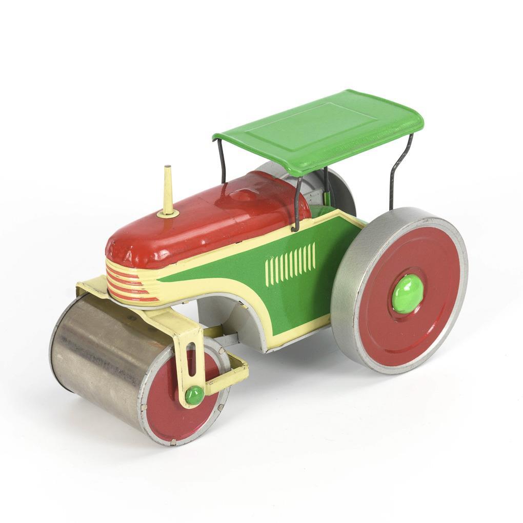 Red-green painted roller with intact movement. Key missing.