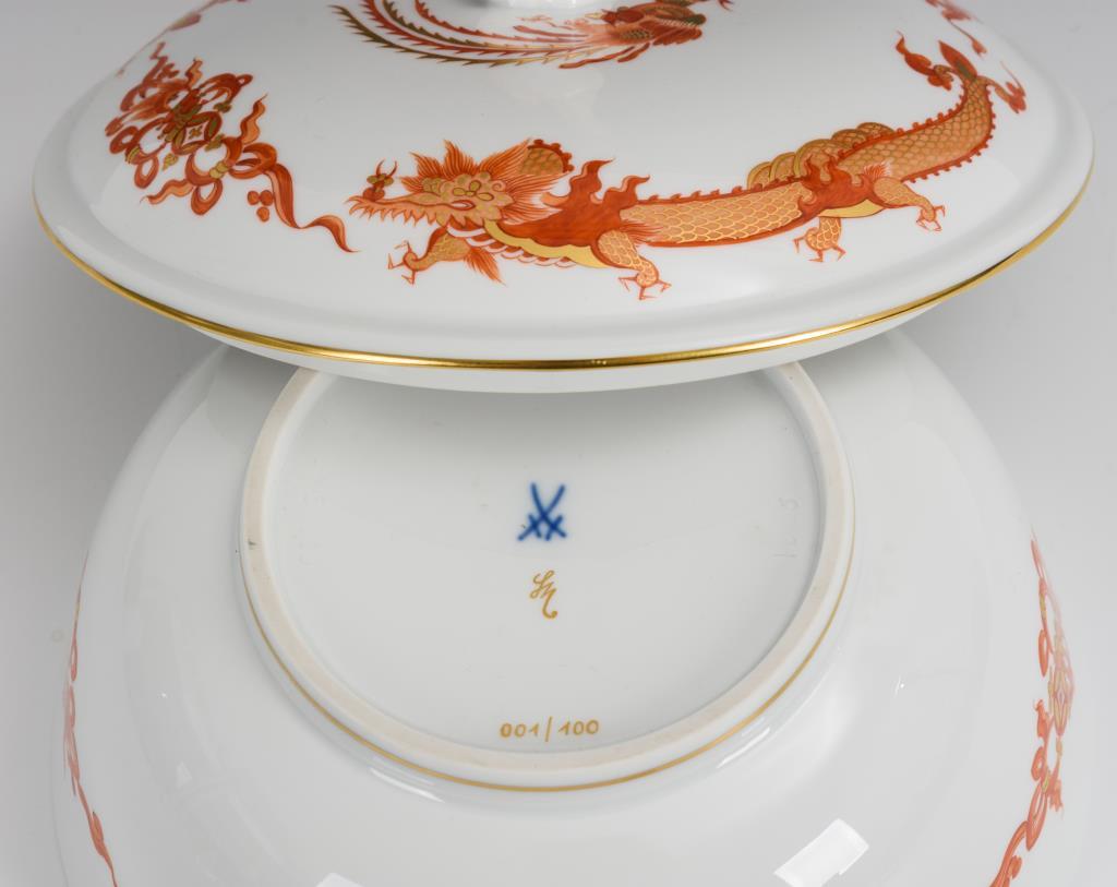 Schale mit Hahnenknauf sowie dem Dekor "Roter Drache" .