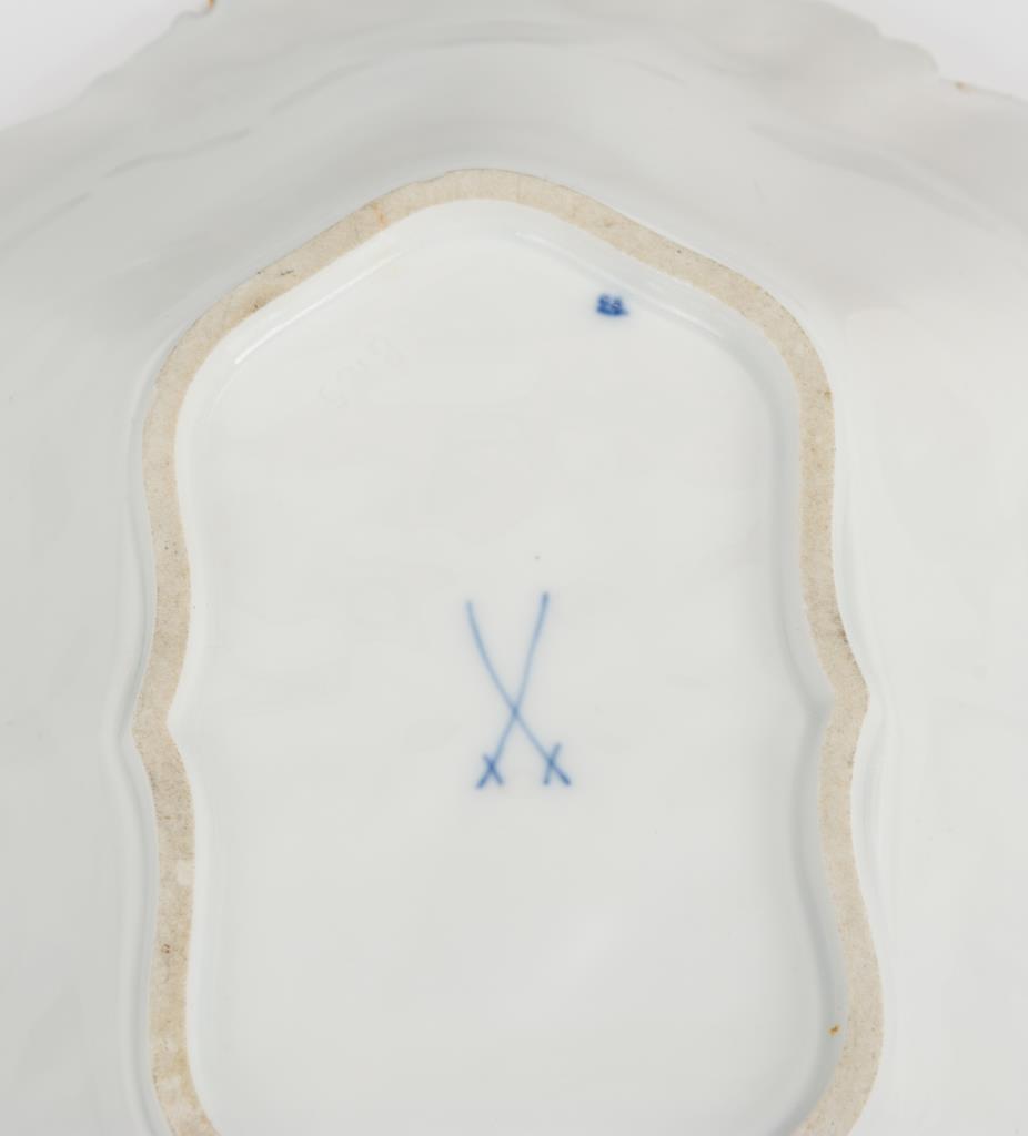 Rechteckige Schale mit Rocaille- und Akanthusblattrelief. Restauriert.