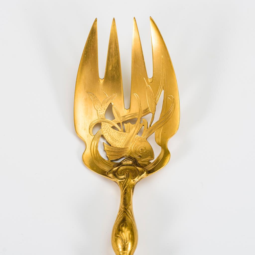 2-teiliges Set mit Jugendstil-Reliefdekor und Fischgravuren. Leichte Alters- und Gebrauchsspuren.