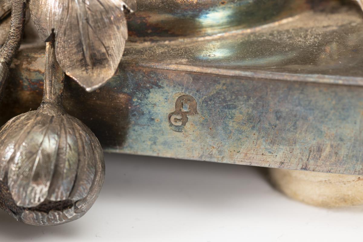 1-flame candlestick with columnar stem and plastic fruit decoration at the foot. Straces of soldering and small defects.