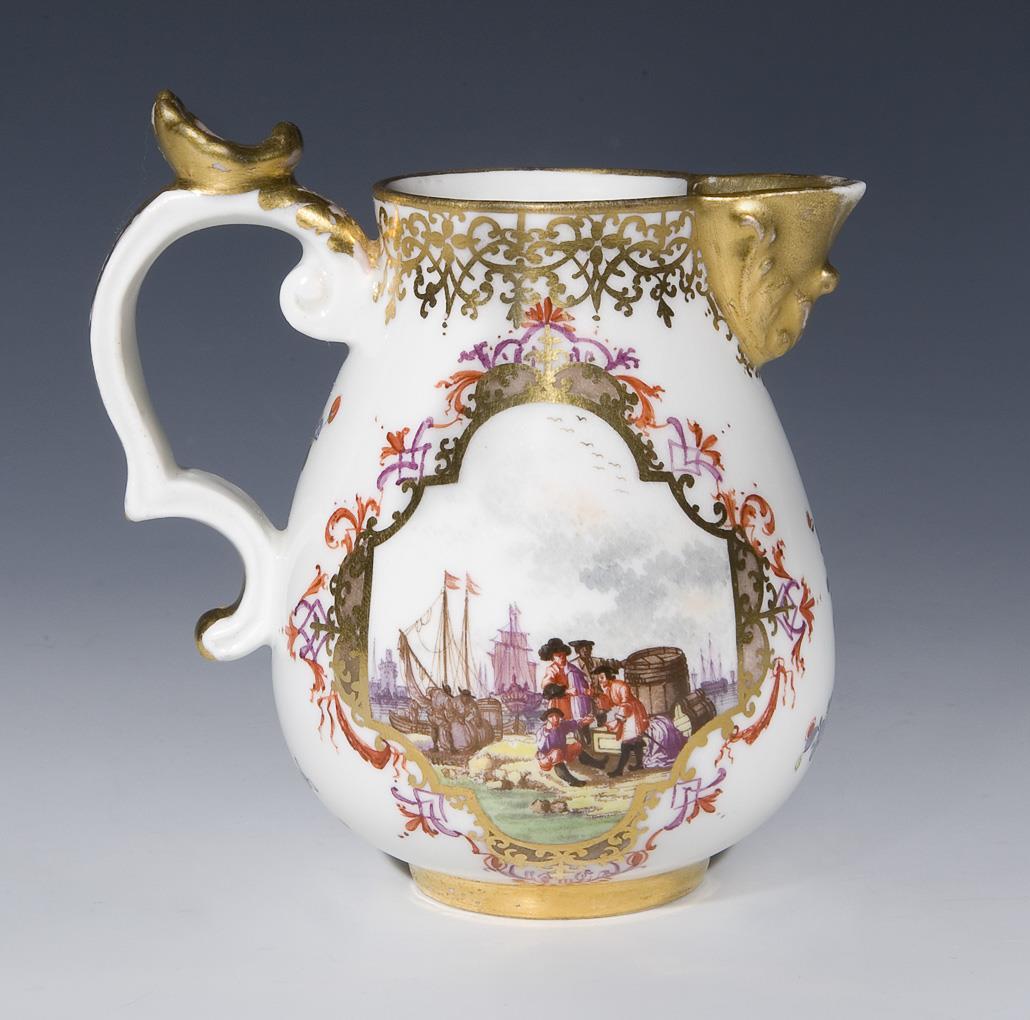 Baroque milk jug with purchase journey ice scenes. Meissen.