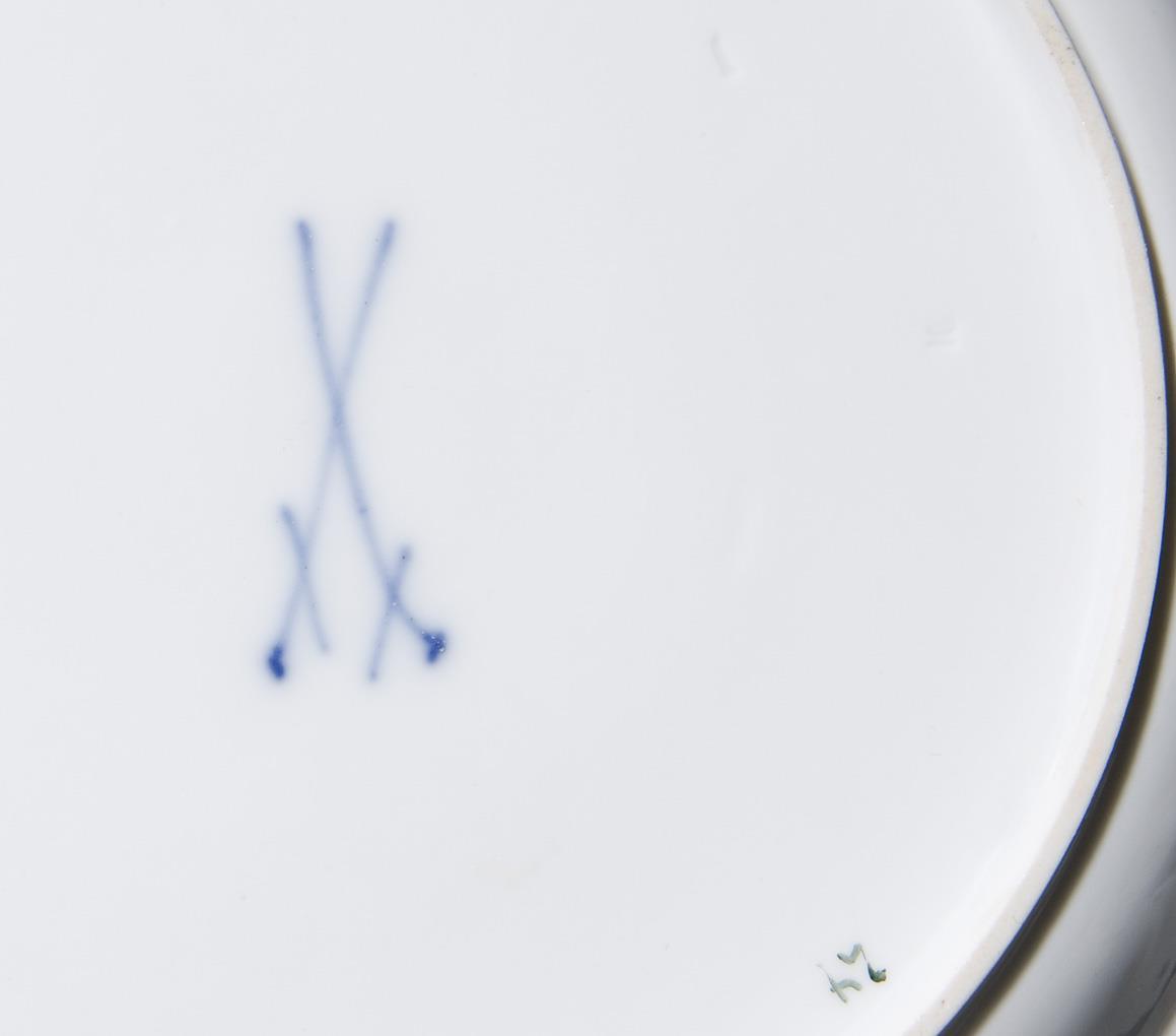 Colored floral painting with six different motifs. Form "New cutout". Sword marks. Minimal glaze imperfections.