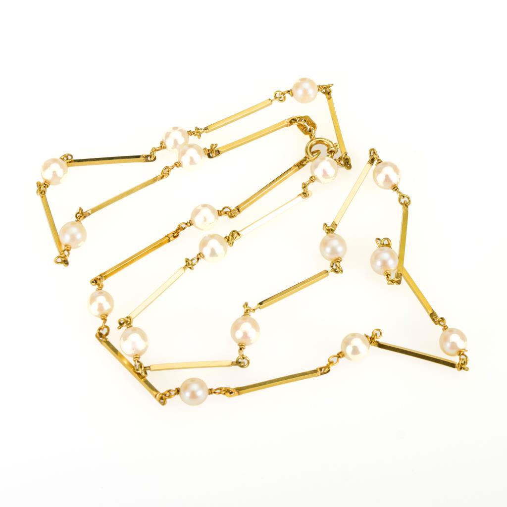 Stabgliederkette mit 17 Zuchtperlen, an Ringfederschließe.