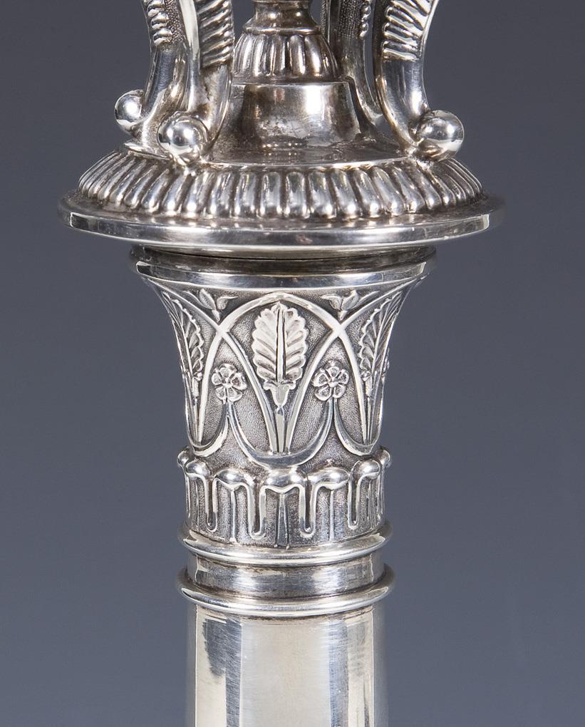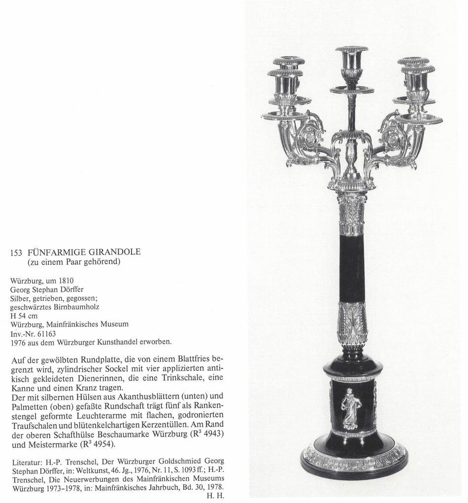 A candlestick with identical form in combination with blackened wood was made by the Würzburg goldsmith Georg Stephan Dörffer (1771-1824) and is in the Mainfränkisches Museum in Würzburg * Partner auction Bergmann.