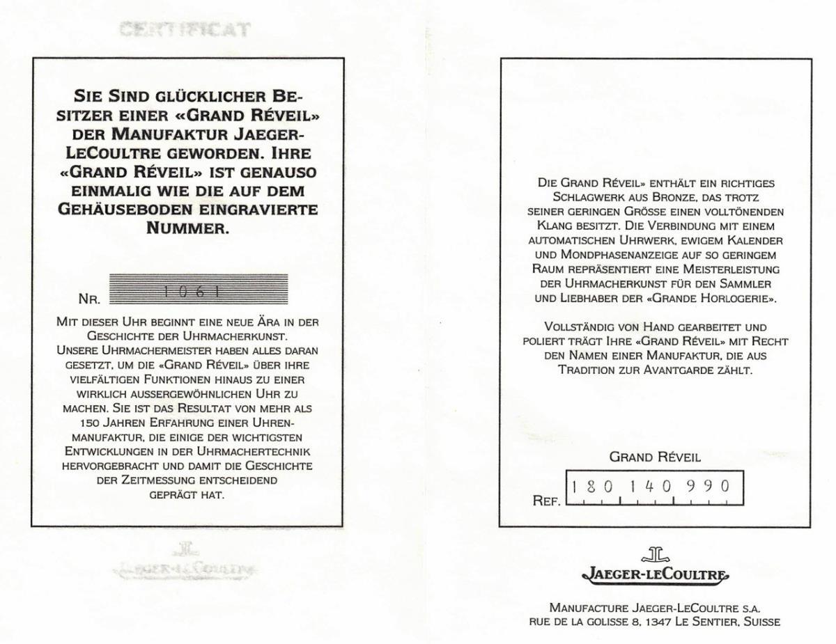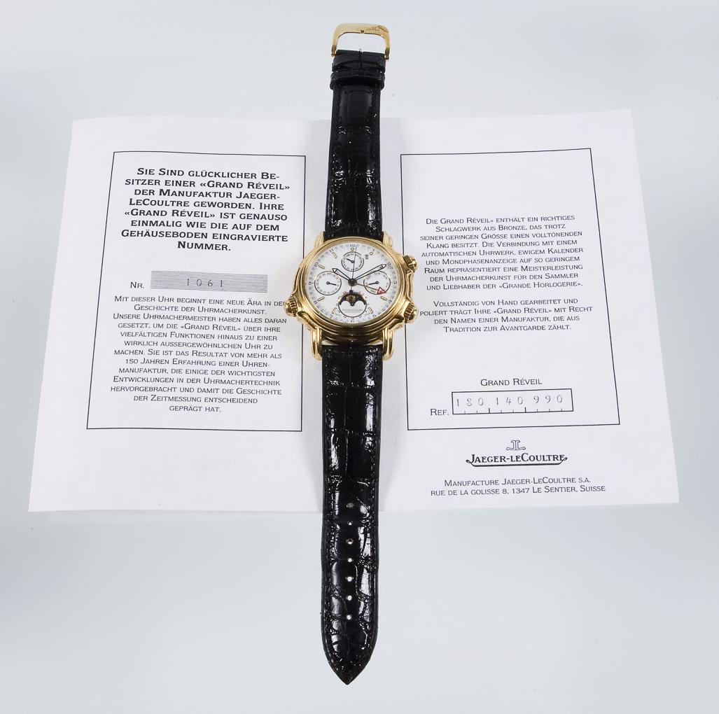 Wristwatch: Grand Réveil Calendrier Perpétuel in gold. JAEGER-LECOULTRE.