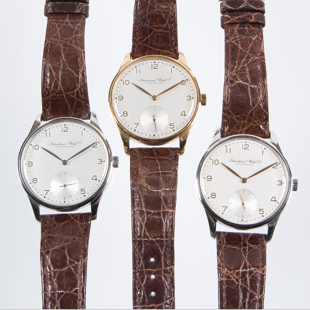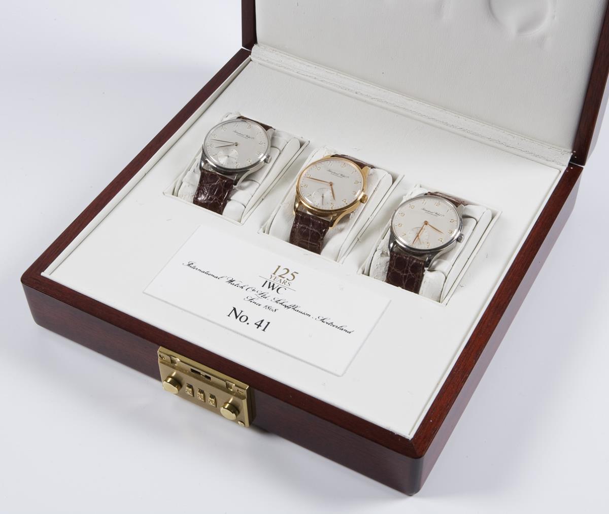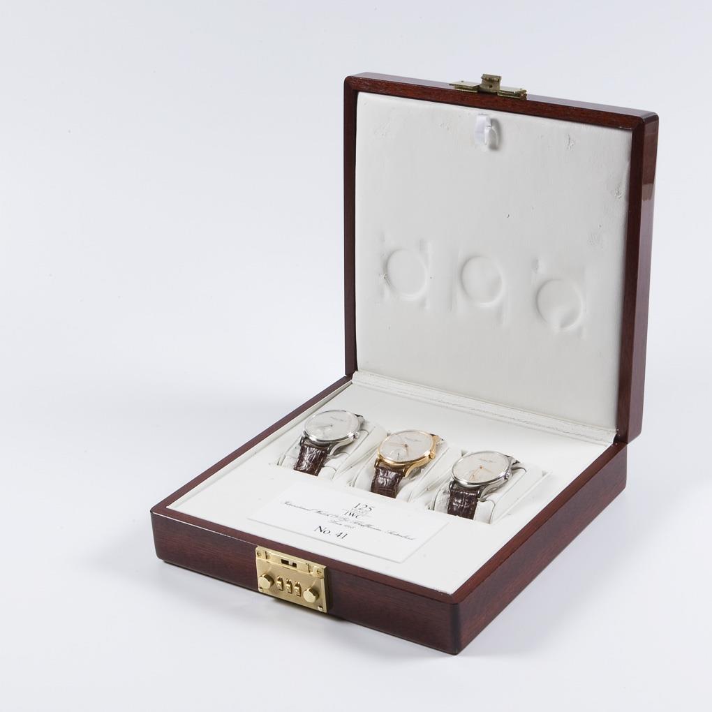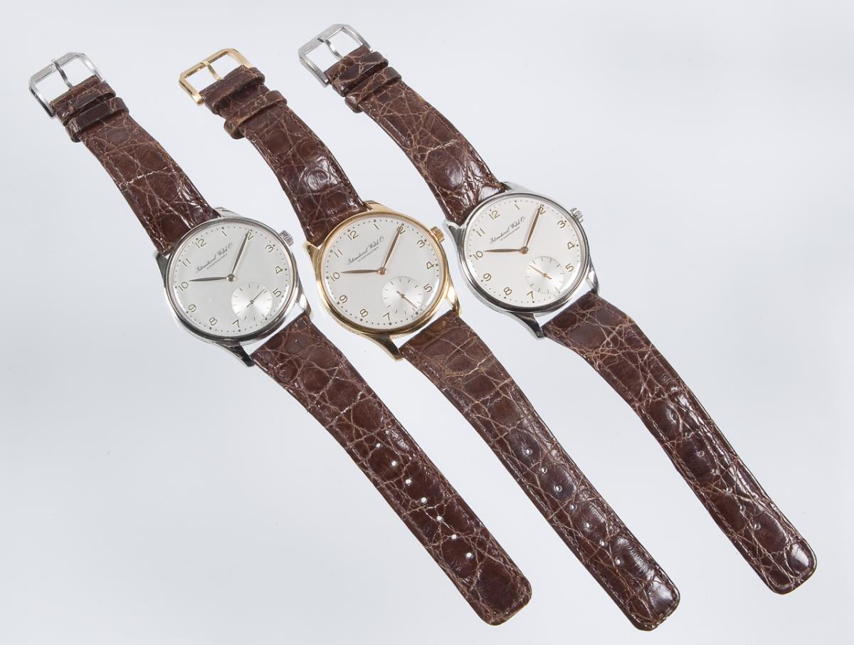 Set of 3 Portugieser wrist watches in platinum, gold and stainless steel. IWC SCHAFFHAUSEN.
