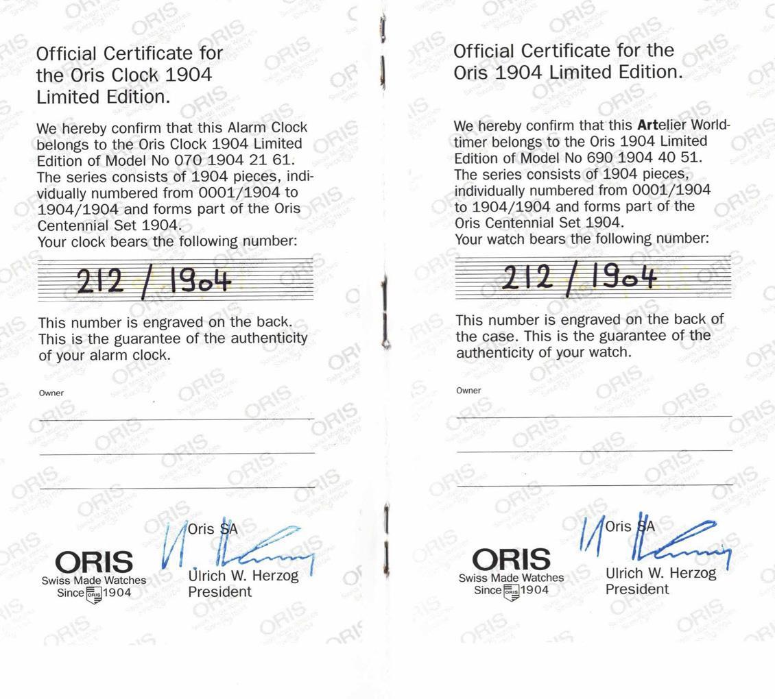 Centennial Set: Wristwatch High Mech Worldtimer and Alarm Clock. ORIS.