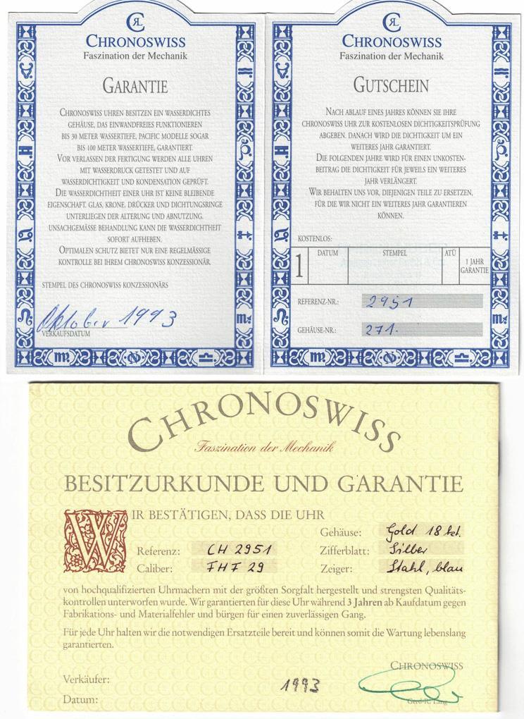 Limited, numbered: 271/650. manual winding. Swiss lever escapement. Caliber FHF 29. movement with Geneva stripes. 15 jewels. Sapphire crystal, guilloché silver dial, blued steel hands. Subdials for small seconds and off-center hour indication. Glazed back. Original leather strap with gold pin buckle. Water resistance passport, year of sale 1993. original box, carton. In short time test functional.