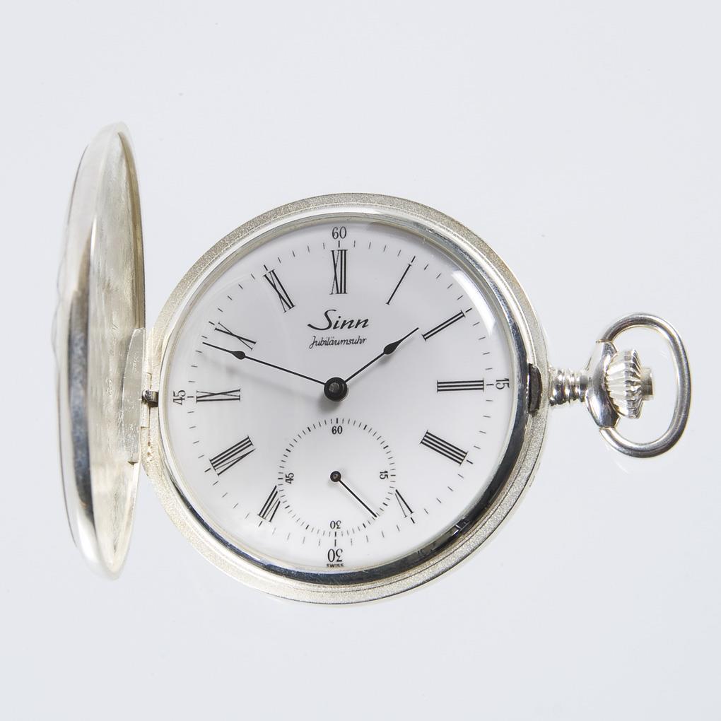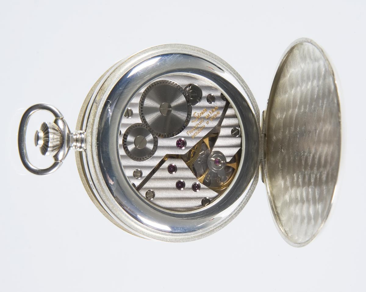 Savonnette with watch chain in silver. SINN.
