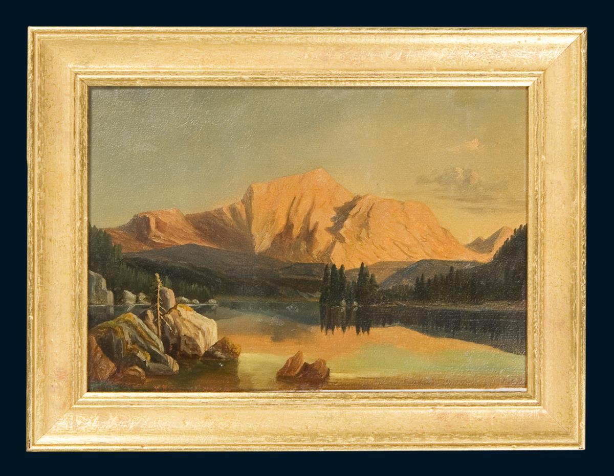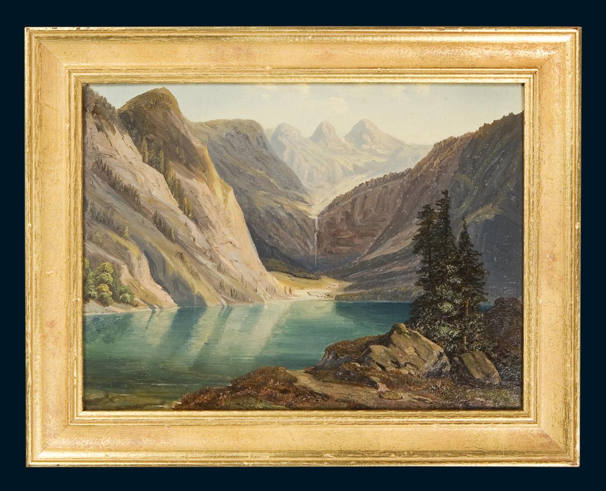 Atmospheric views with two Alpine lakes and a view over the Campagna. As good as new gold frame.