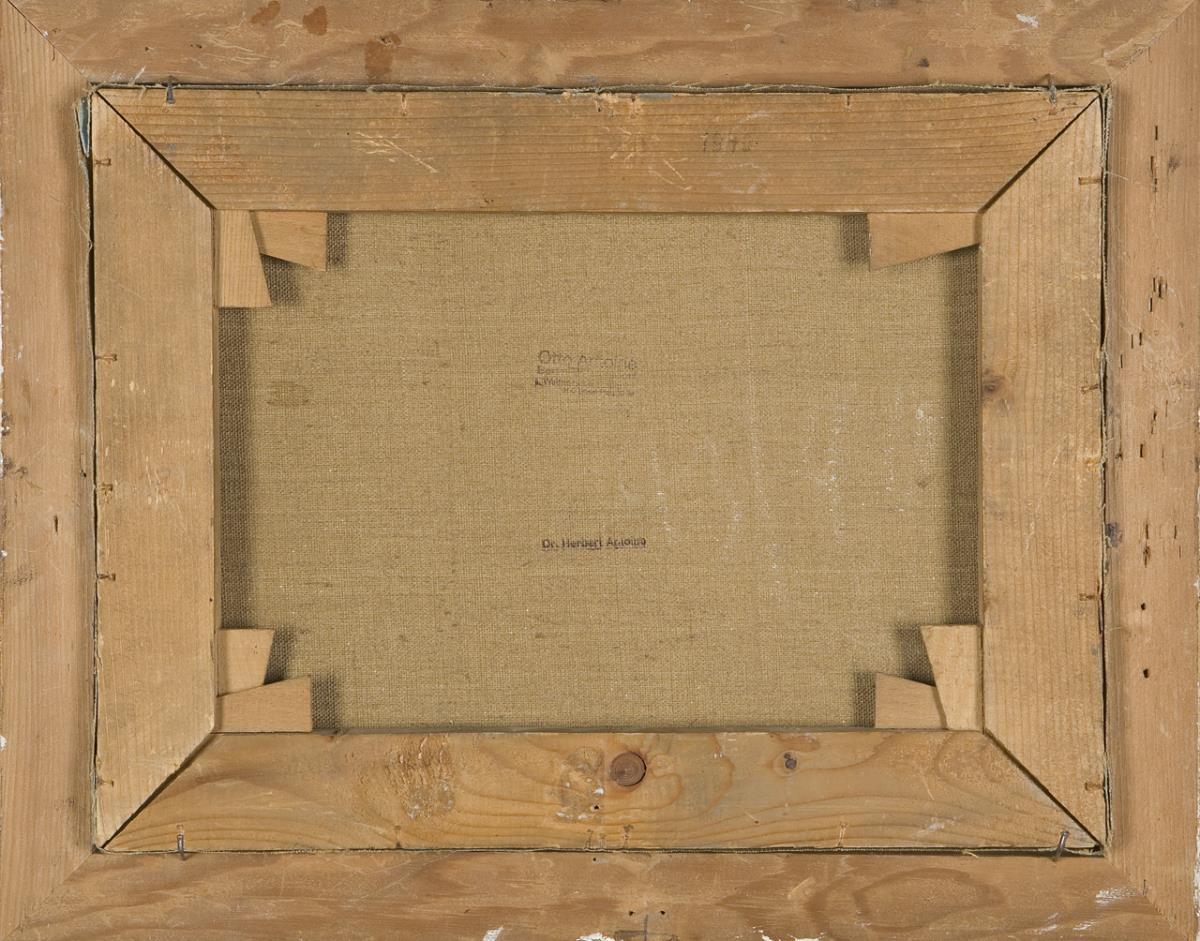 Indistinct stamps of the artist and owner on the back. Original stretcher, white bordered frame.