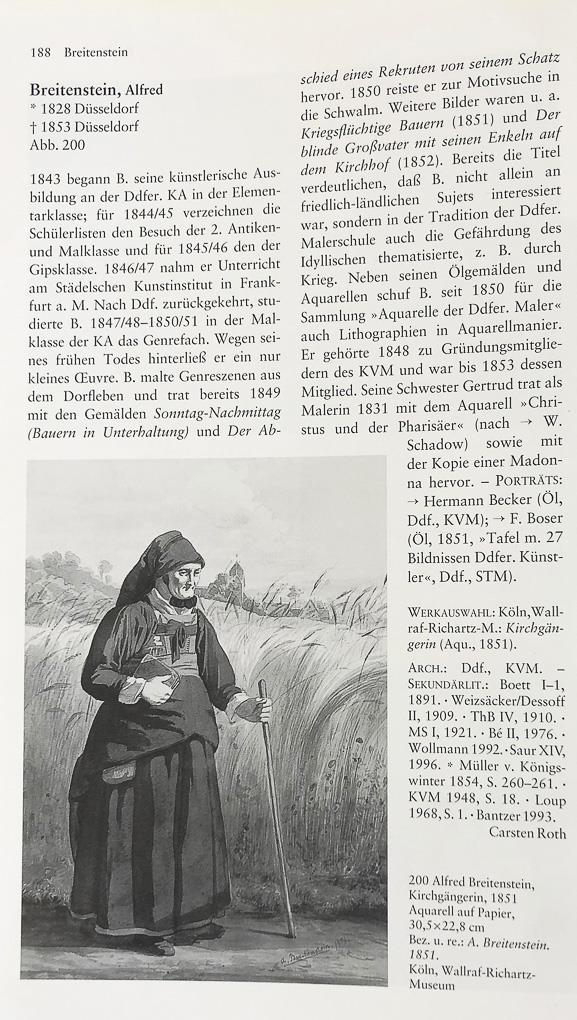 Breitenstein, genre painter, watercolorist, lithographer. Studied at the Academy in Düsseldorf and at the Städelsches Institut in Frankfurt am Main. 1848 founding member of the Düsseldorf artists' association Malkasten * Partner auction Bergmann.
