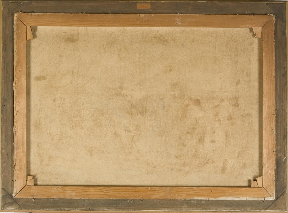 Large-scale view with figure staffage in bright coloration. Profiled frame.