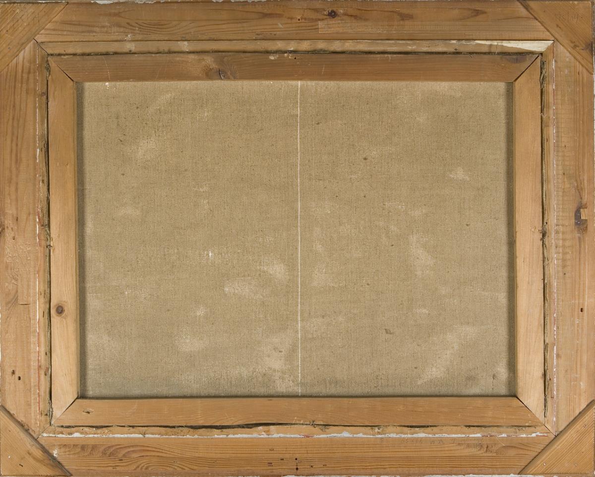 Original stretcher, original silver frame. Center color defect, frame defective on one edge.