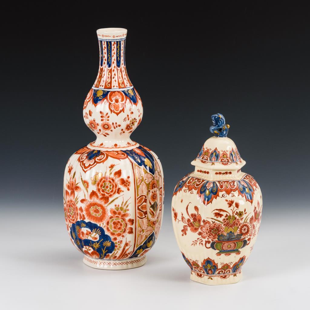 Fayence-Kürbisvase und Deckelvase mit Imari-Dekor