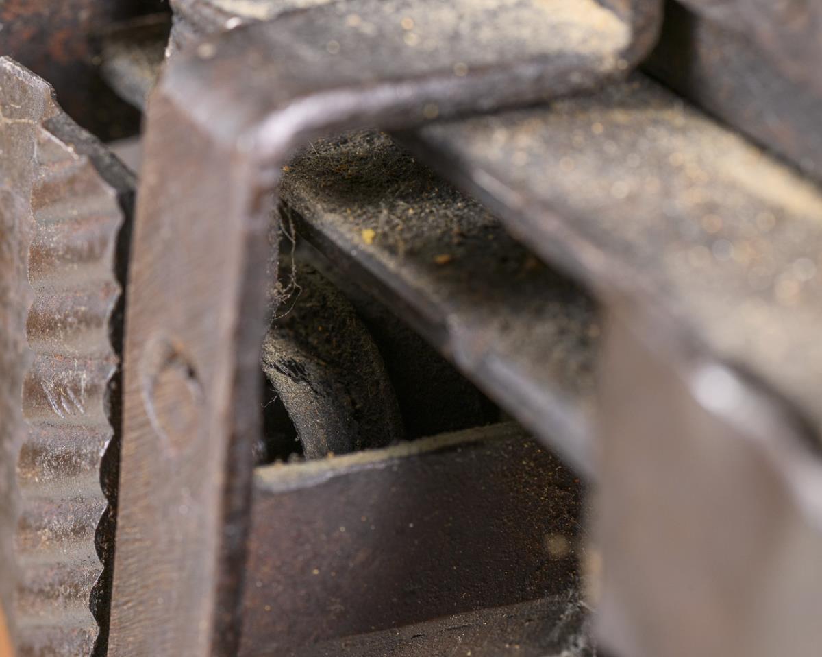 Coniferous wood, solid oak and walnut, burl veneer. Approx. 208 x 215 x 60 cm.