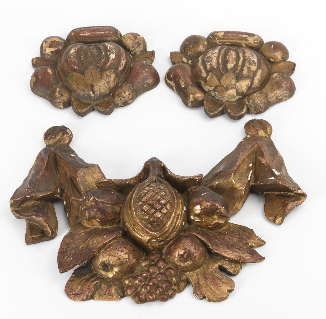 3 carved Baroque decorative elements.
