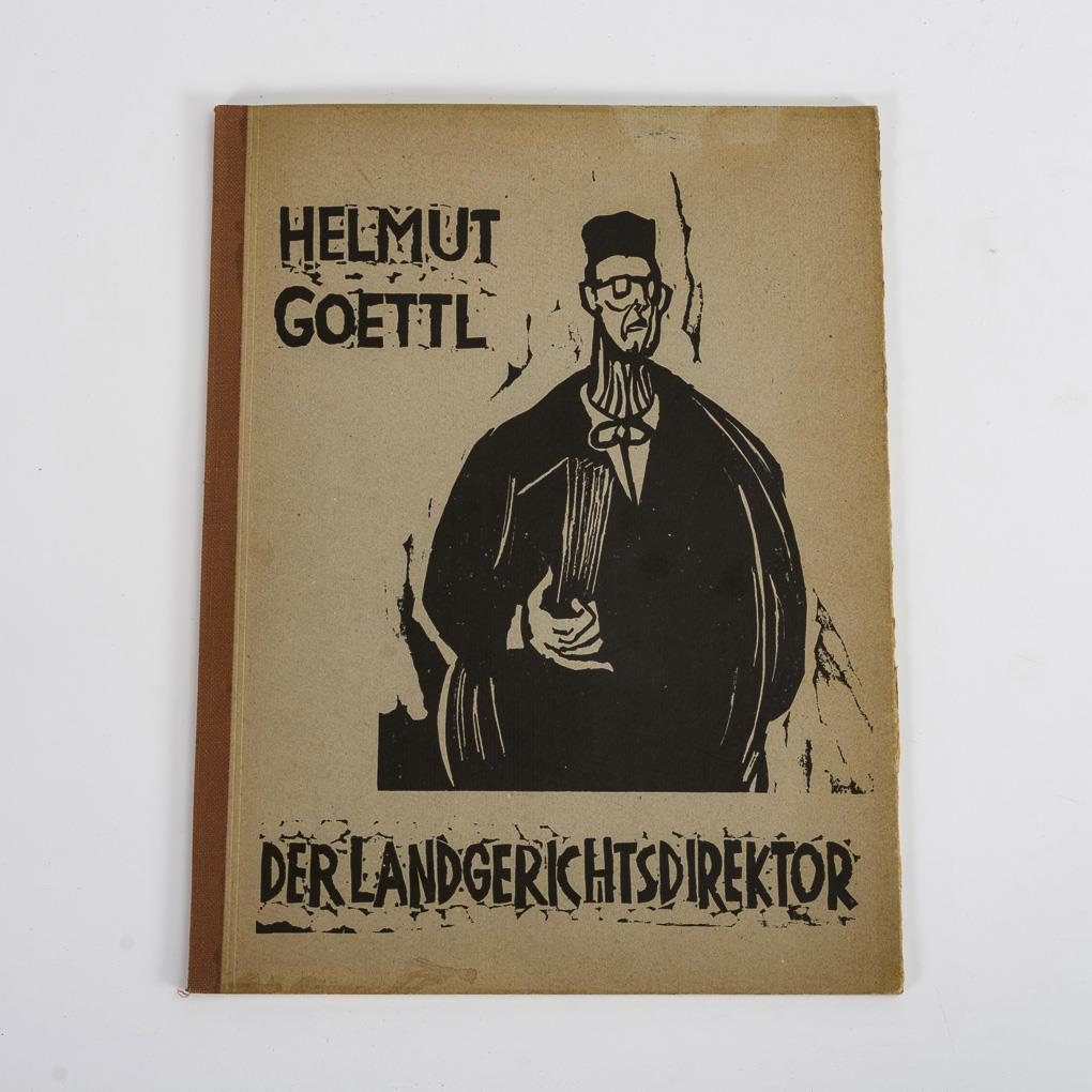 Complete portfolio with 6 linocuts by Helmut Goettl, published by Heino F. von Damnitz, edited by Richard Hiepe, Munich, 1965, title page with dedication "Mich wundert's, dass ich nicht früher drauf gekommen bin - für Hans von Helmut", 1 linocut and imprint handsigned. Binding minimally griffspurig, some foxing.