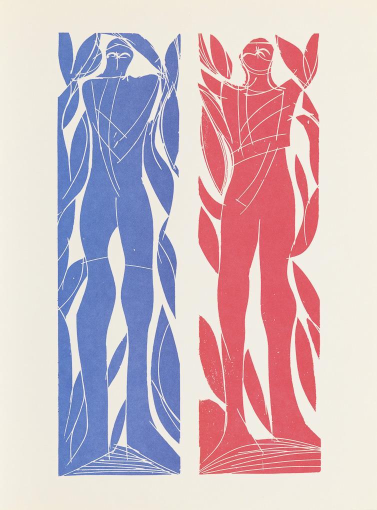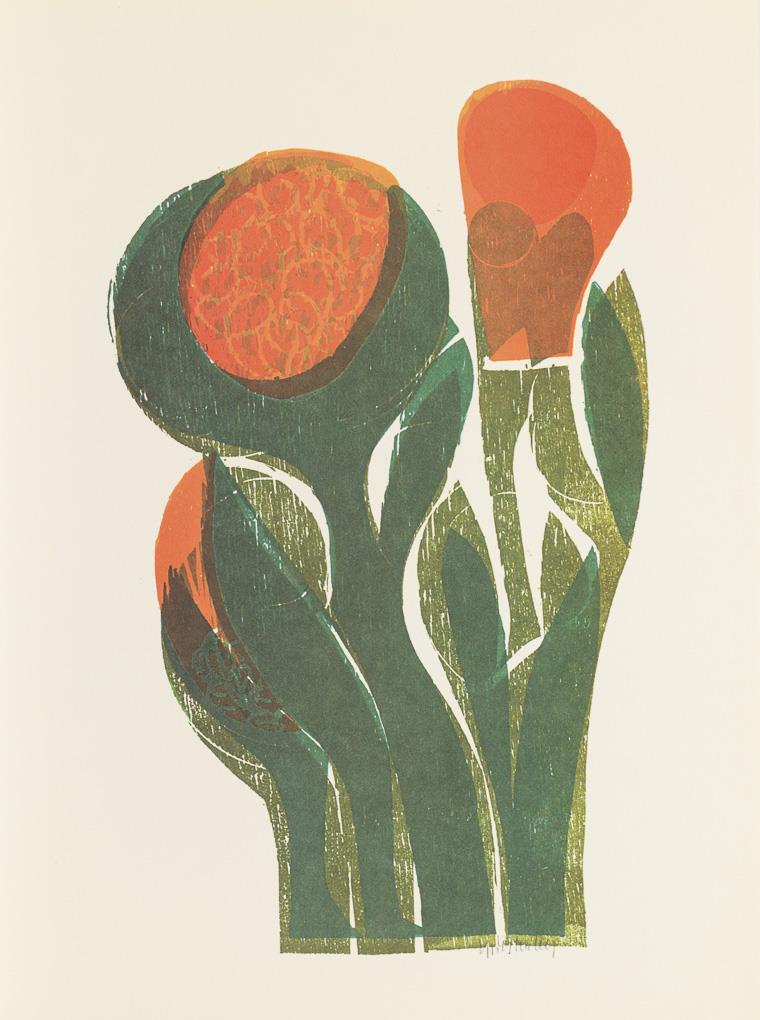 2 original color woodcuts, 2 color woodcuts, 4 color offset prints. Copy: 1230/1500.