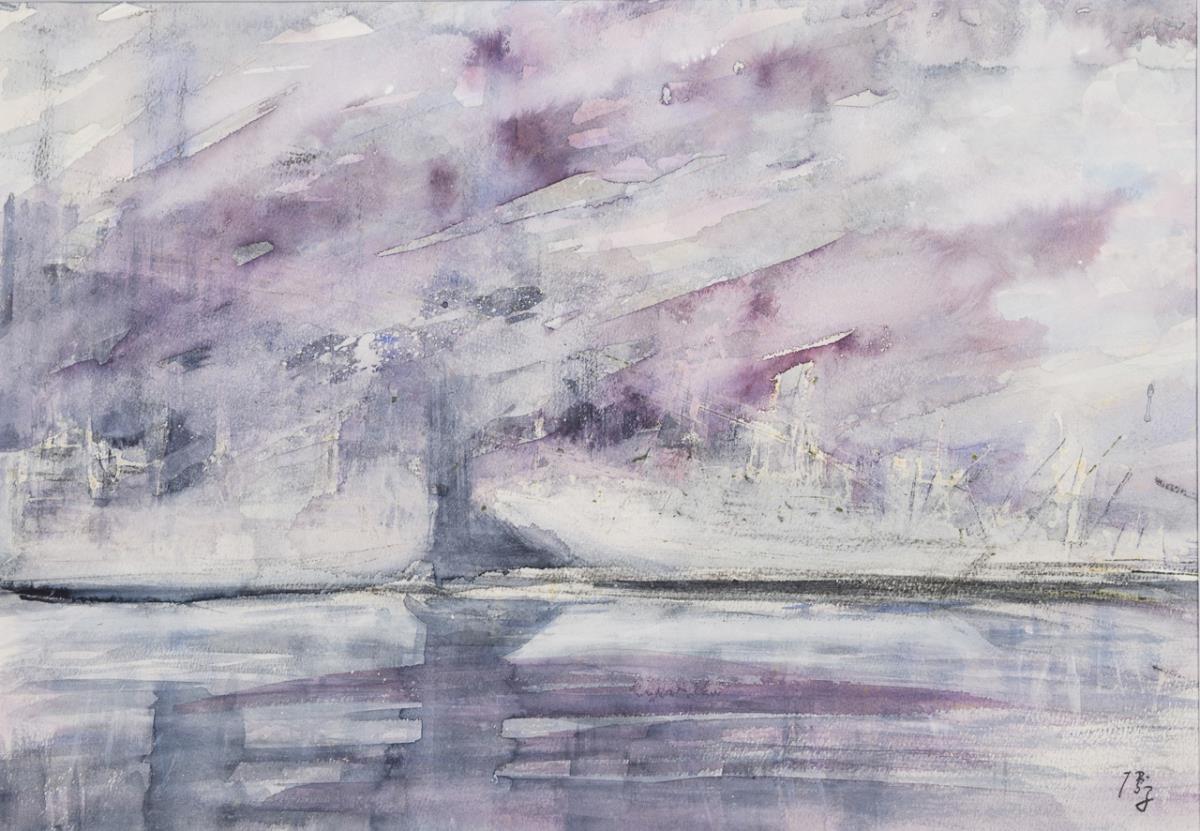 Watercolor. Signed in Japanese on the lower right. 20th c.