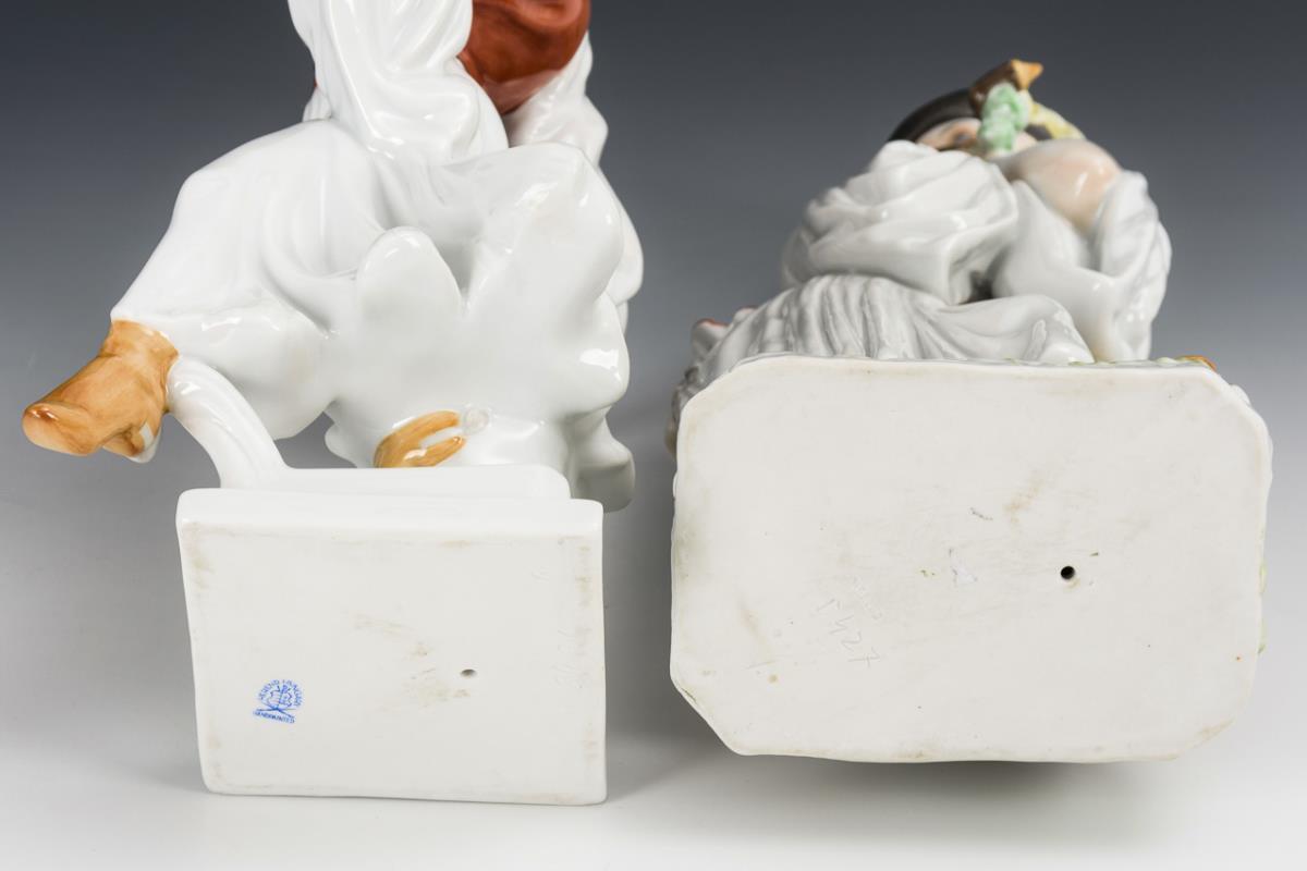 Design after Miklós Izsó by Kató Gácsér. 1x shepherd leaning on his stick with pipe. / 1x dancing shepherd. | Addendum: right thumb missing; fingers bumped.