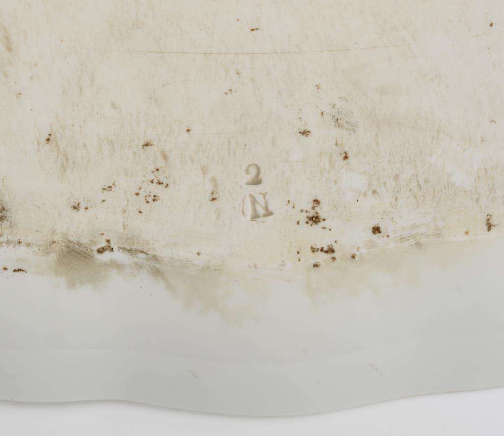 Oktogonaler Teller mit Tischchen, Blumen und Baum im Spiegel.