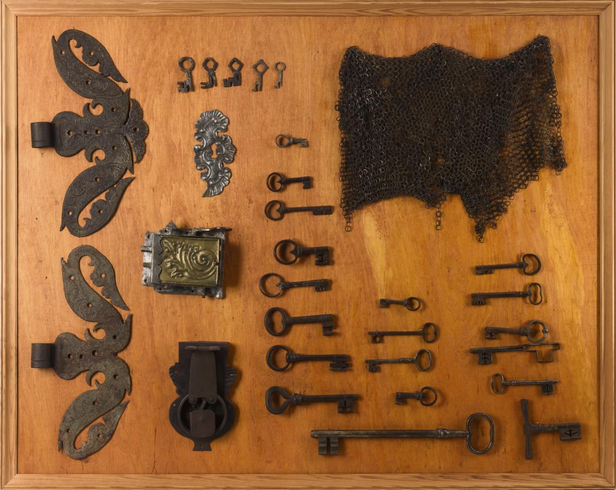 You are here:   Home Categories Metalworks Sammlung barocke Schlüssel, Schlösser, Beschläge und Stück eines Kettenhemdes