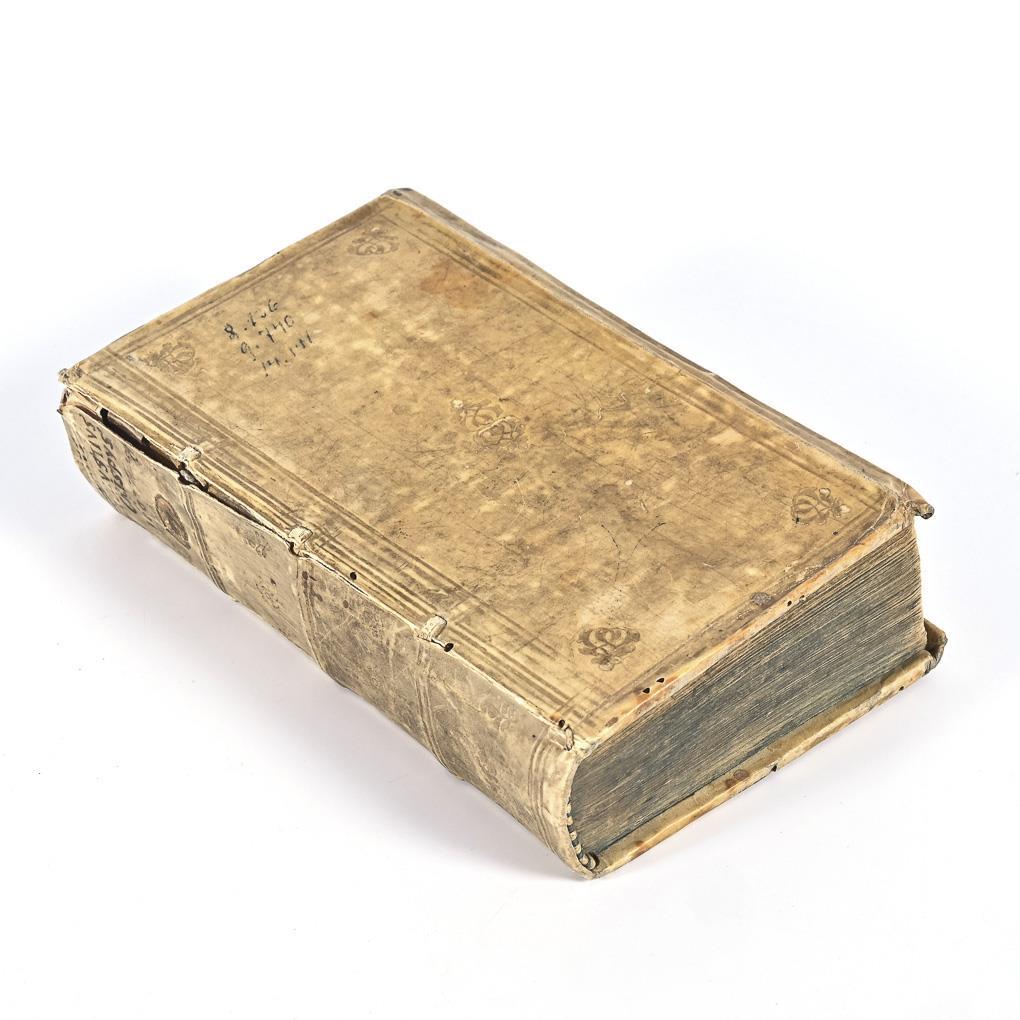 Ex recognitione Iani Gruteri. Woodcut printer's mark with wild man on leaping stag. 13, 687 pages with handwritten notes and annotations. Parchment binding, remnants of blue cutting. With ownership notes from 1744, 1861, 1869 and 1872. Good condition for age.