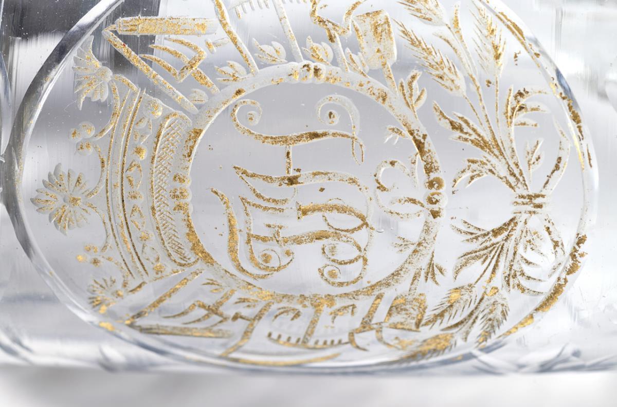 Colorless, streaky glass, gold staffage; demolition. H 20 cm.