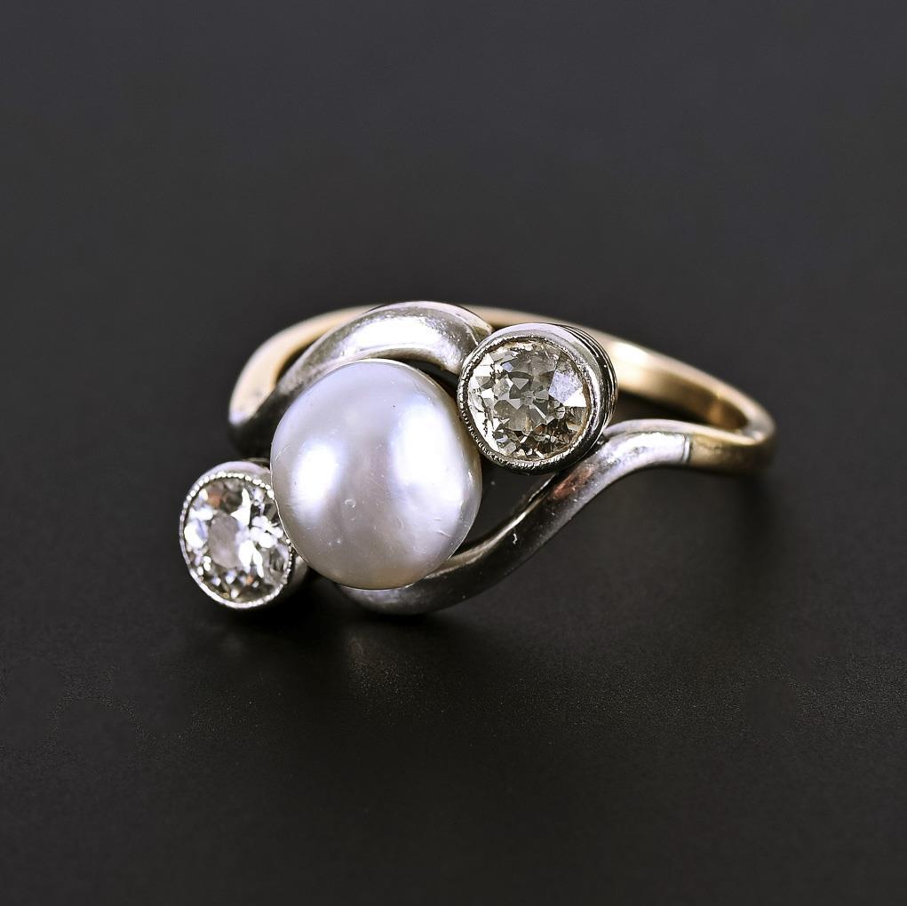 2 frame set old cut stones and baroque pearl, between narrow rail .