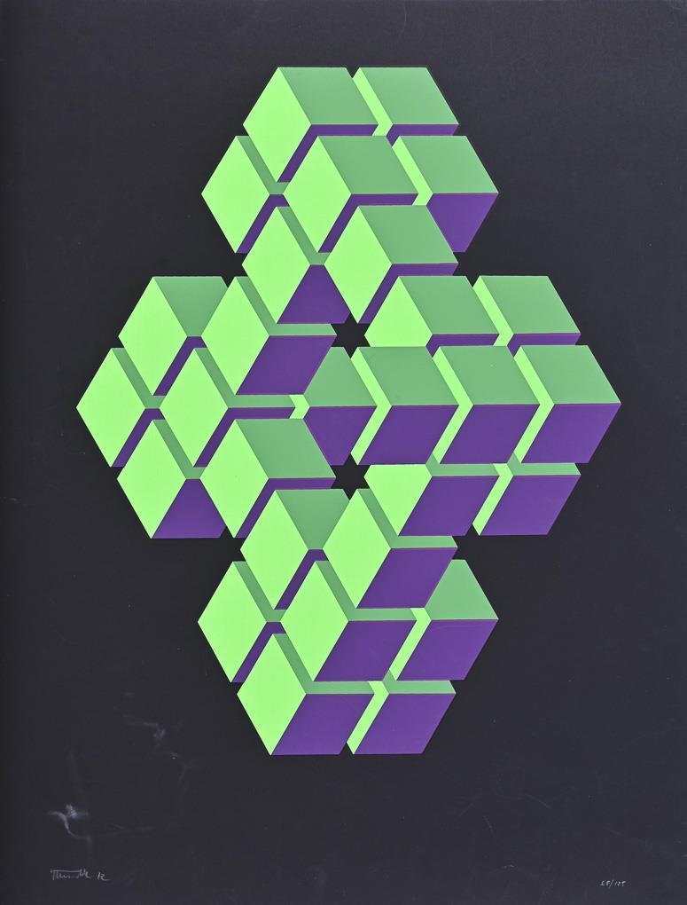 Color silkscreen on laid vellum. Pencil signature. [19]72. copy: 68/125.