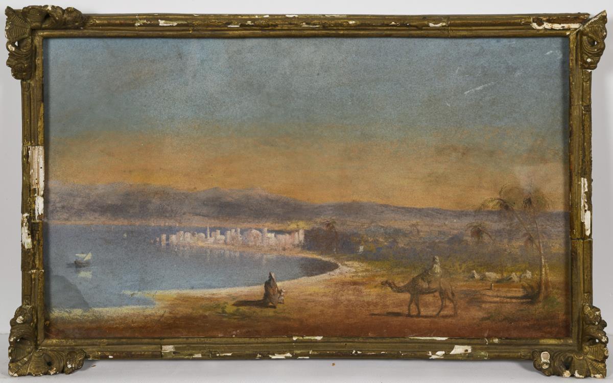 28 x 47 cm. Framed & behind glass : 33 x 52 cm (frame defective).