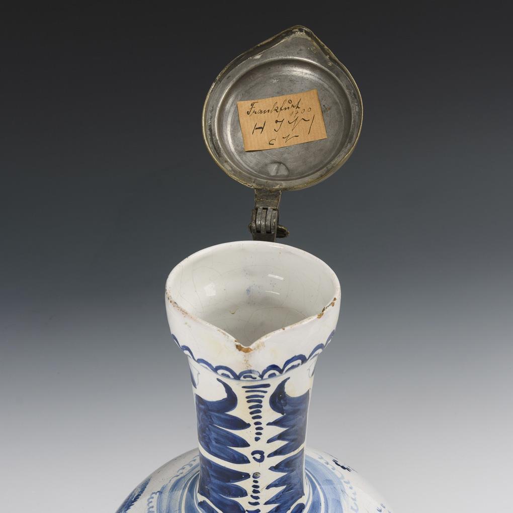 Large baroque faience narrow neck jug with chinoiserie. Hanau.