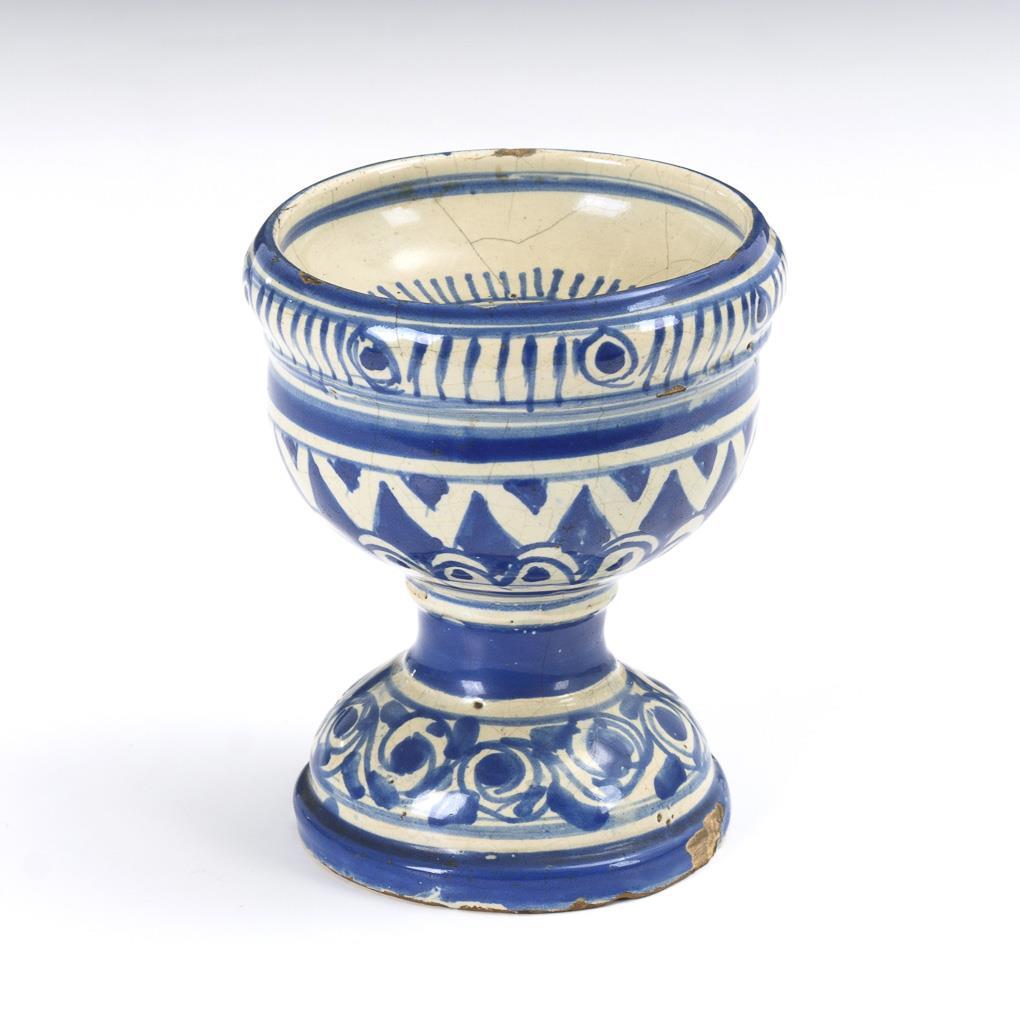 Hell body, white glazed, stylized painting in cobalt blue. H 11 cm.