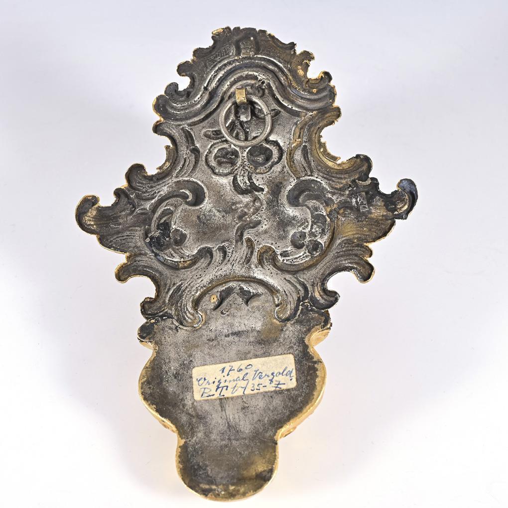 Gilded holy water basin with rich rocaille reliefs and hinged lid. Small breaks in the material.