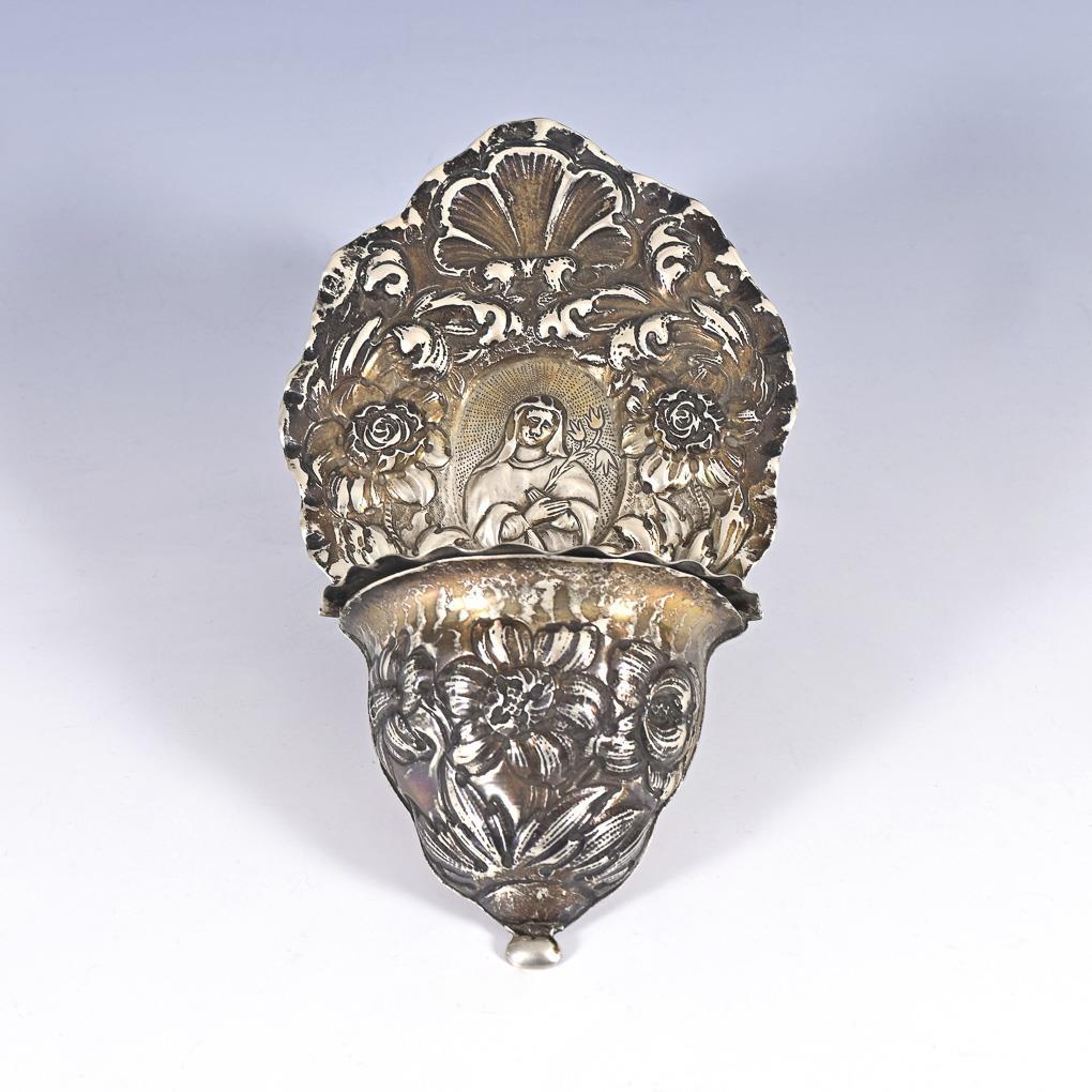 Silver holy water container.