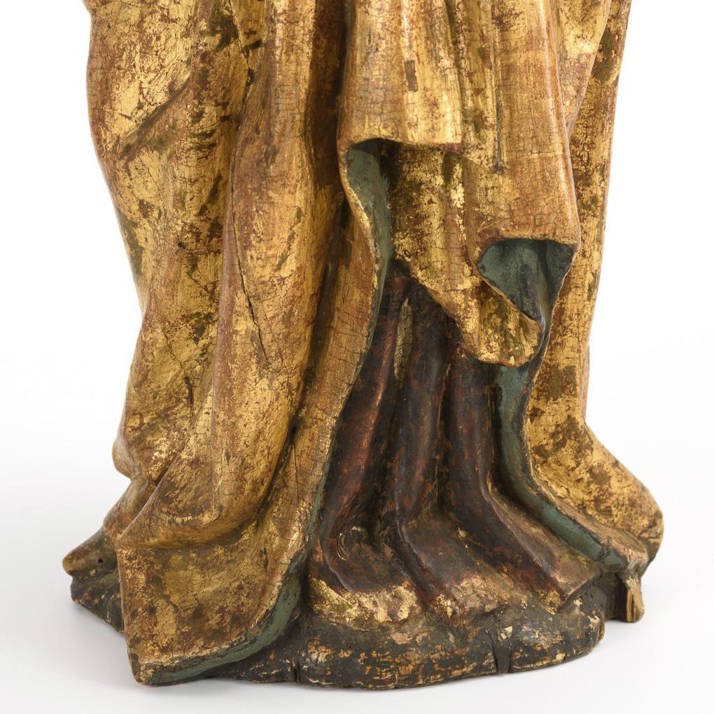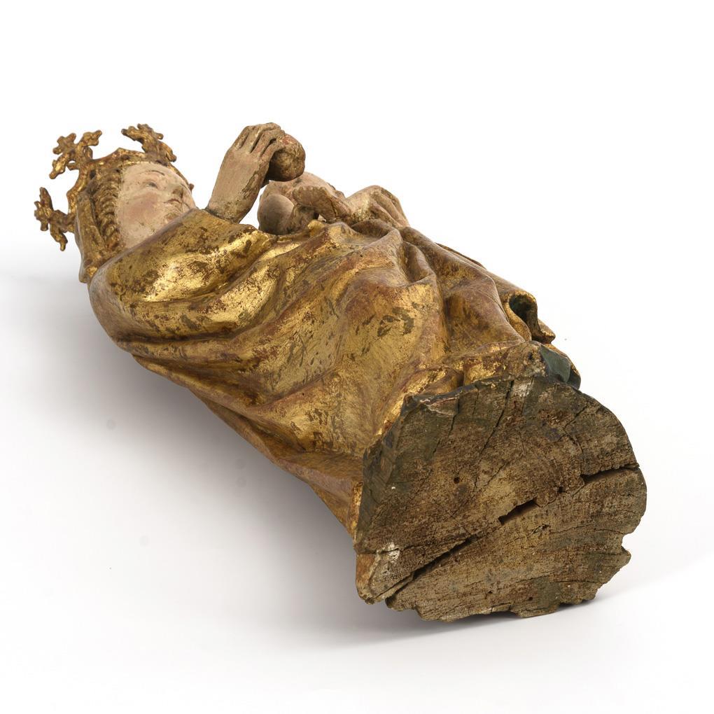 Softwood polychrome painted and partly gilded. 15th c. H 60,5 cm.