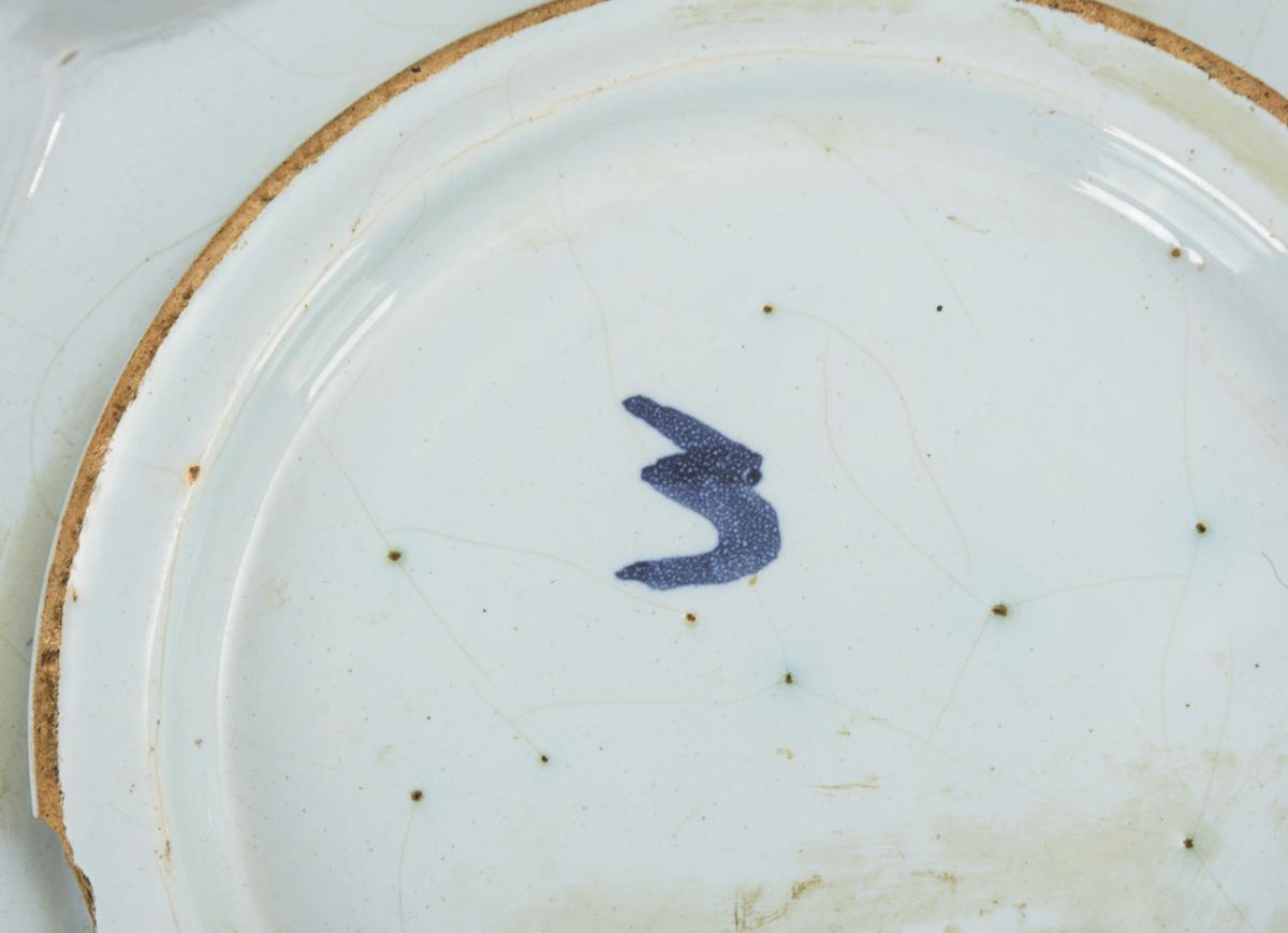 Paste blue glazed, painting in cobalt blue. Ø 34,5 cm.