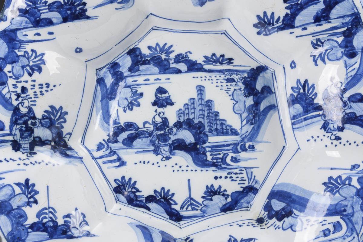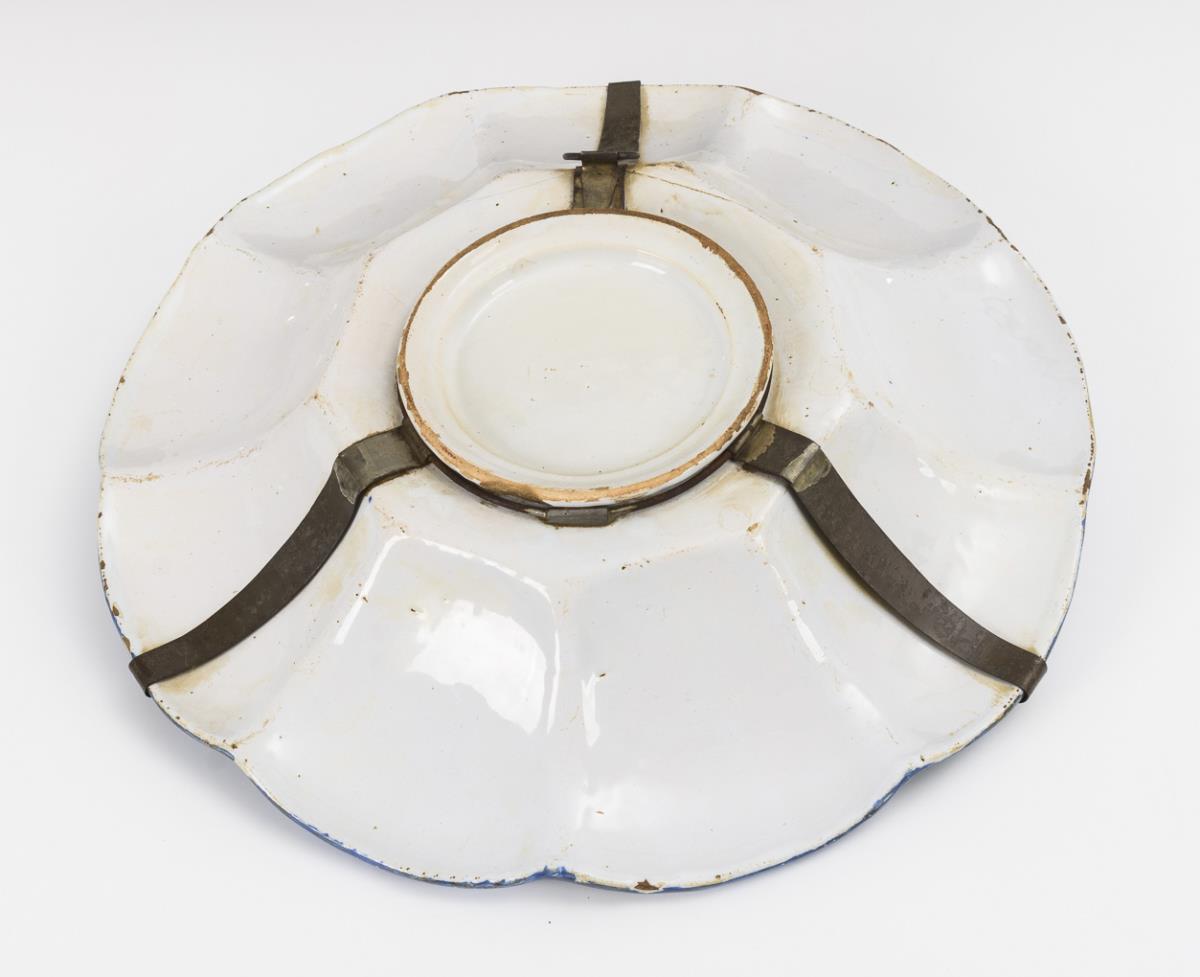 White glazed, painting in cobalt blue. Ø 34,5 cm.