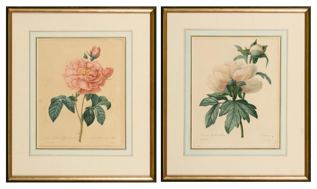 2 feine Blumentafeln aus dem weltbekannten Oeuvre von Redouté. Etwas stockfleckig.