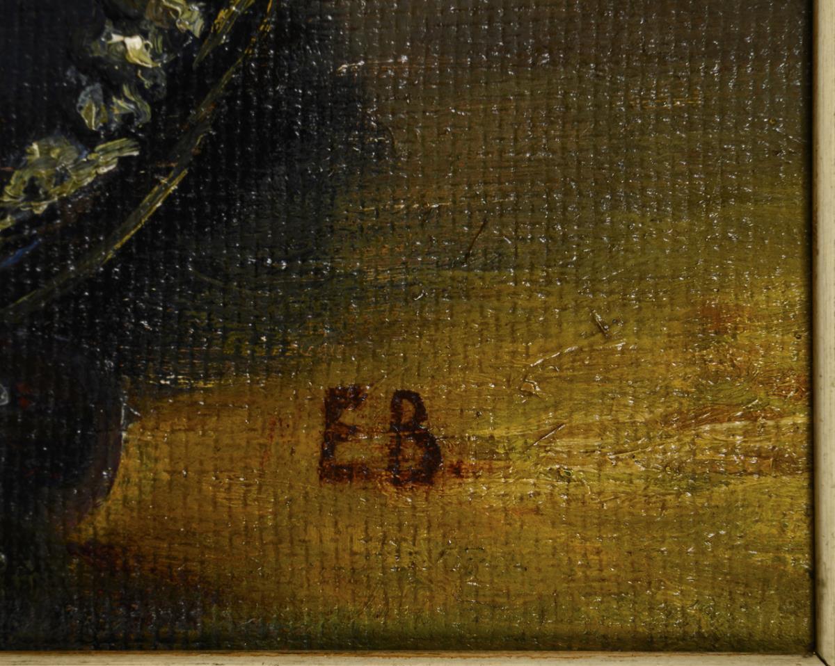 Monogrammist "EB": Still life with roses and fruit