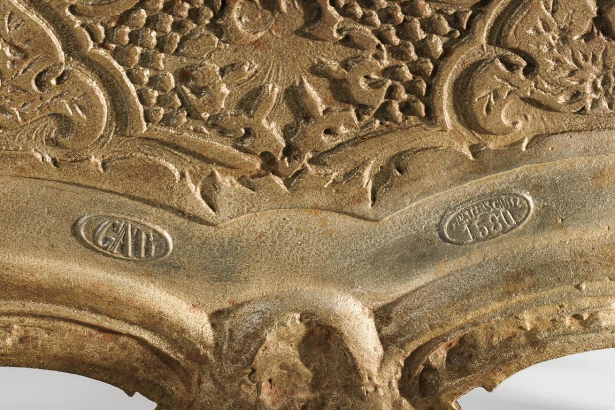 Decorative historicism metal etagere. Marked for Gebrüder Gienanth in Eisenberg/Pfalz.