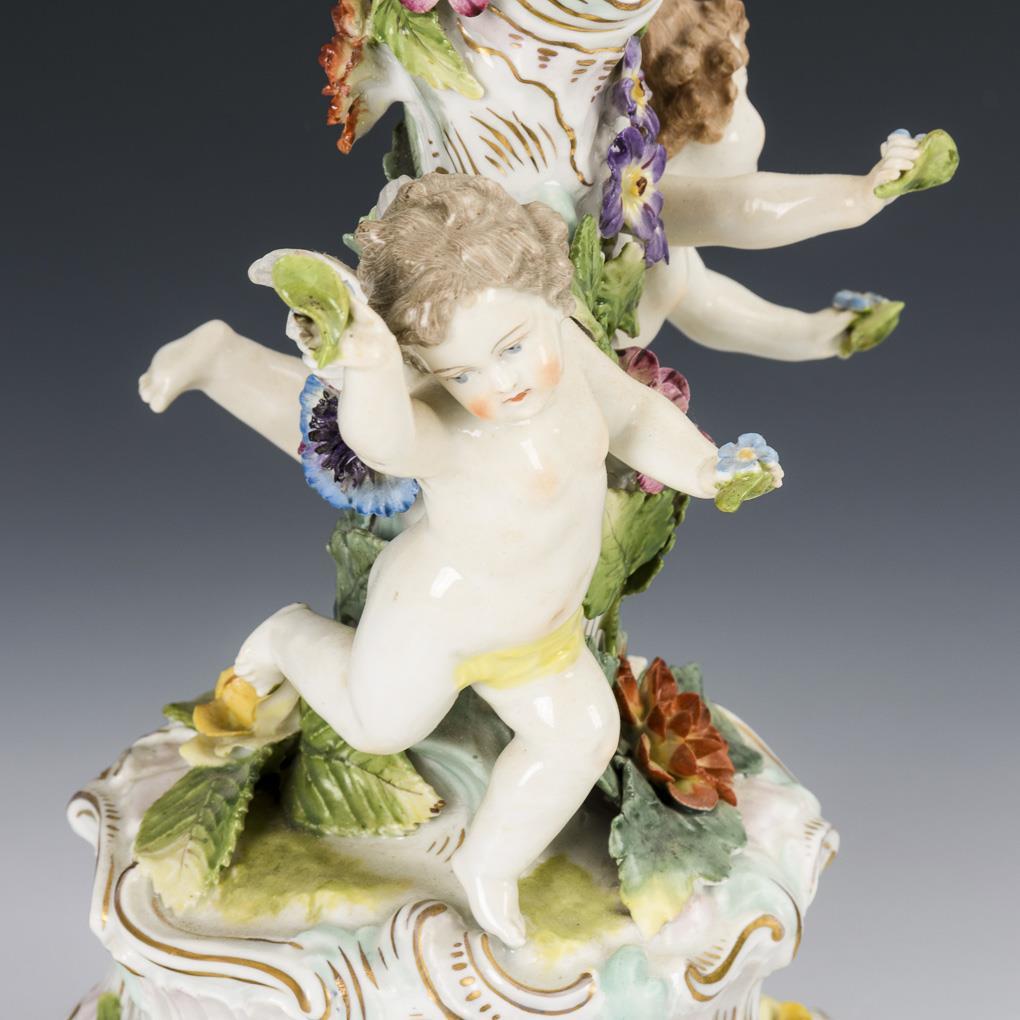 1-flame rocaille chandelier with two putti standing on the shaft and rich floral decoration. 1 flower restored.