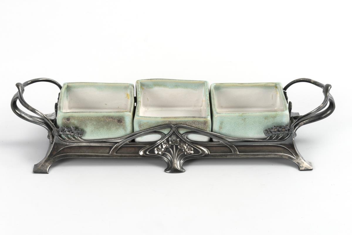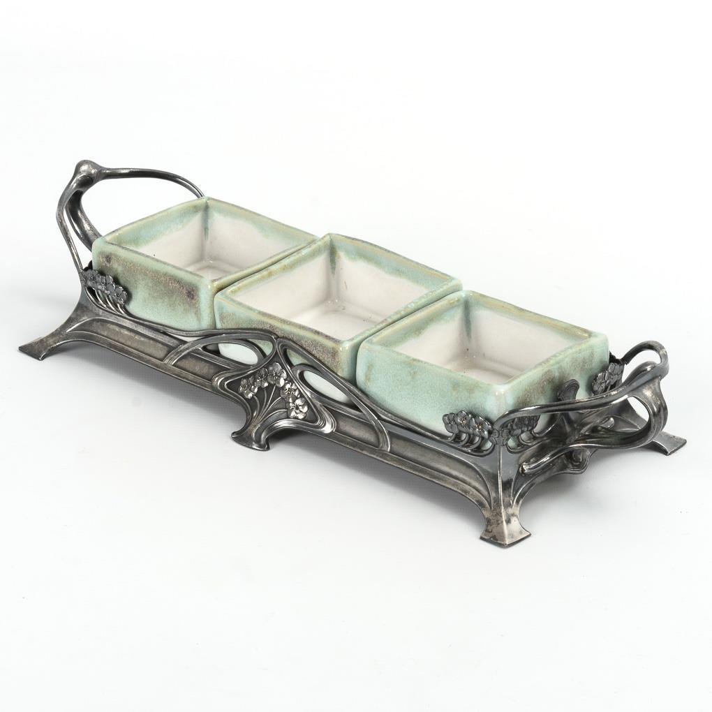 Art Nouveau table bowl with ceramic inserts. WMF.