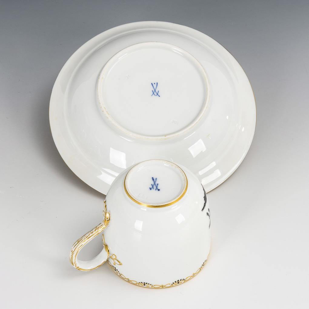 Black lot painting, gold staffage. H cup 6,5 cm, Ø supplemented saucer 15 cm.