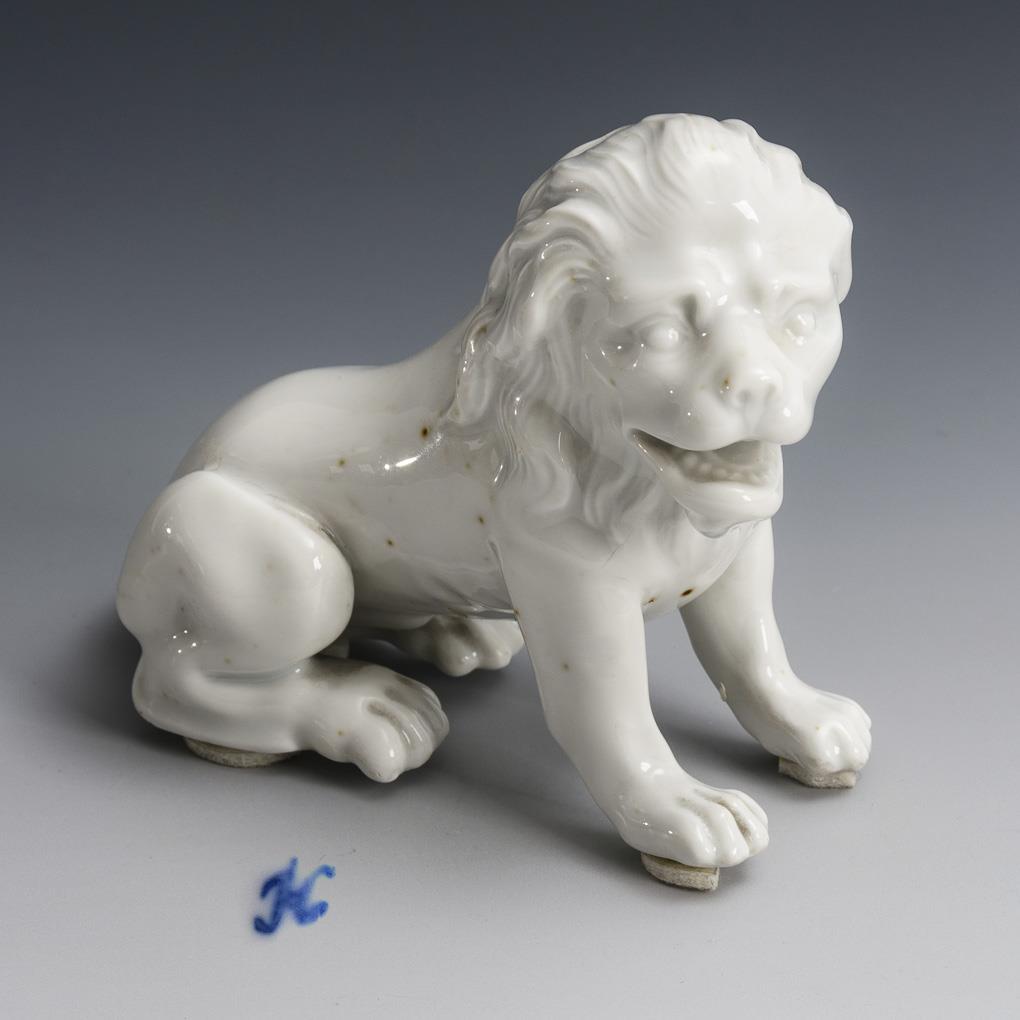 Sitting lion. Tail end restored, touch of ash, small fire crack in the throat.